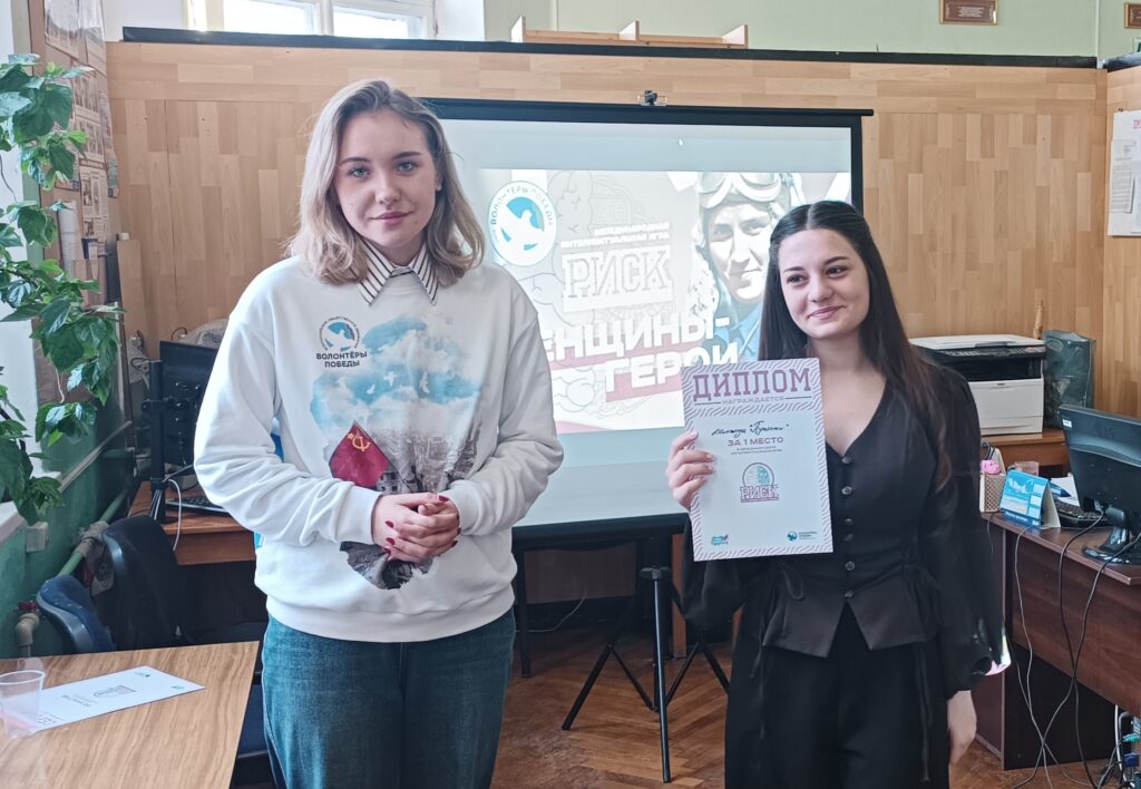 После этого стартовала интерактивная викторина «РИСК» под названием «Женщины-герои». Её провела Ульяна Плотникова, руководитель штаба ВОД «Волонтёры-Победы» города Симферополя.