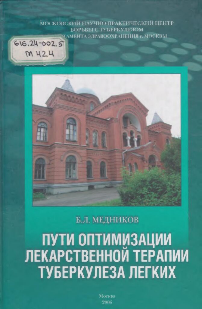 Пути оптимизации лекарственной терапии туберкулеза легких [Текст] : монография / Б. Л. Медников ; Моск. научно-практический центр борьбы с туберкулезом. г. Москва. – М. : МНПЦБТ, 2006. – 127 с.