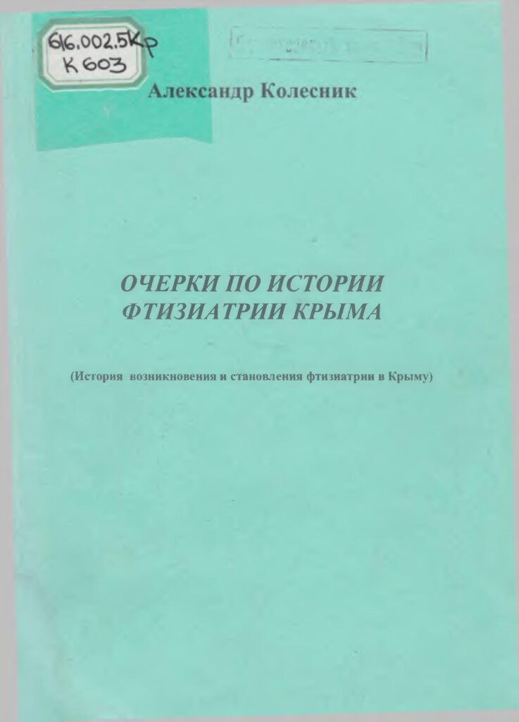 Очерки по истории фтизиатрии Крыма [Текст] : (История возникновения и становления фтизиатрии в Крыму) / А. В. Колесник. – Симферополь : [б. и.], 2005. – 269 с. : ил.
