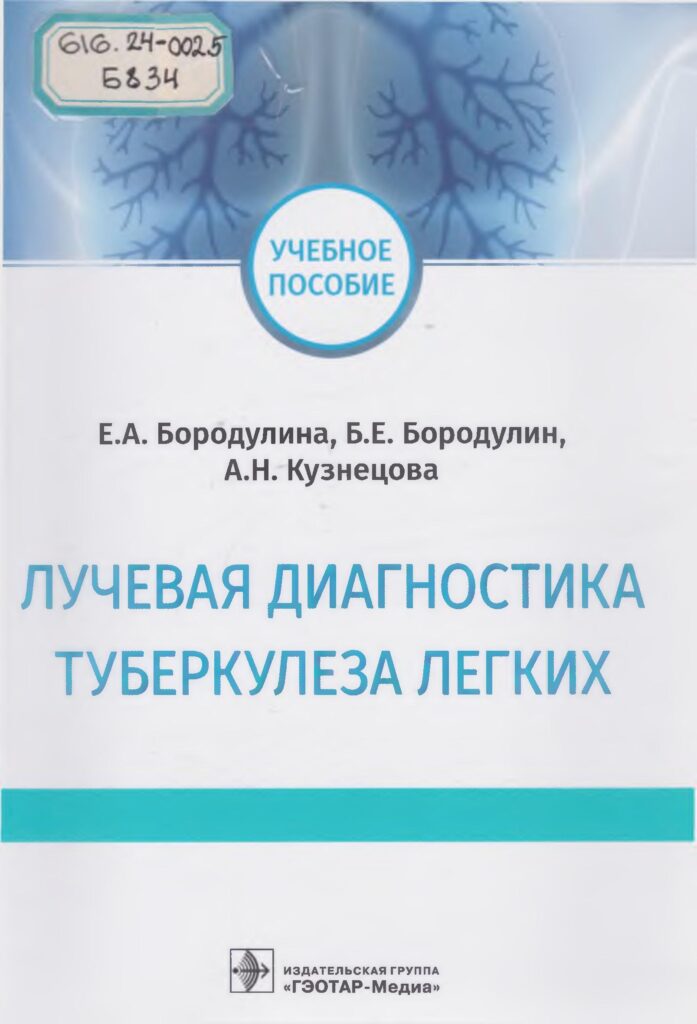 Лучевая диагностика туберкулеза легких : рекомендовано Координац. советом … по направлению подготовки 31.05.01 “Лечебное дело” [Текст] : учебное пособие / Е. А. Бородулина, Б. Е. Бородулин, А. Н. Кузнецова ; М-во науки и высшего образования РФ. – Москва : Гэотар-Медиа, 2021. – 117 с : ил.