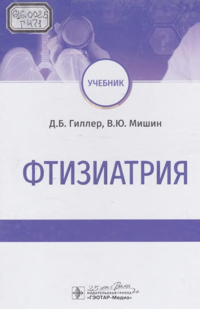Фтизиатрия [Текст] : учебник … дисциплина “Фтизиатрия” [высшее образование] / Д. Б. Гиллер, В. Ю. Мишин. – М. : Гэотар-Медиа, 2020. – 576 с. : ил., фот., фот. цв. – (Учебник).