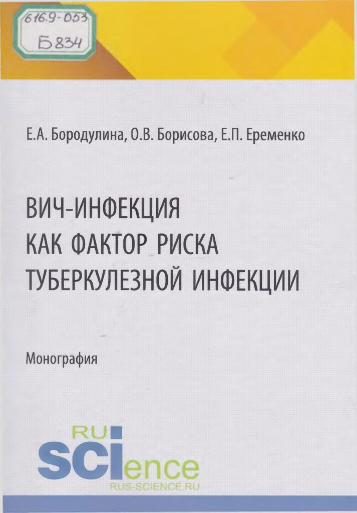 ВИЧ-инфекция как фактор риска туберкулезной инфекции [Текст] : монография / Е. А. Бородулина, О. В. Борисова, Е. П. Еременко. – Москва : РУСАЙНС, 2026. – 158 с. : табл.