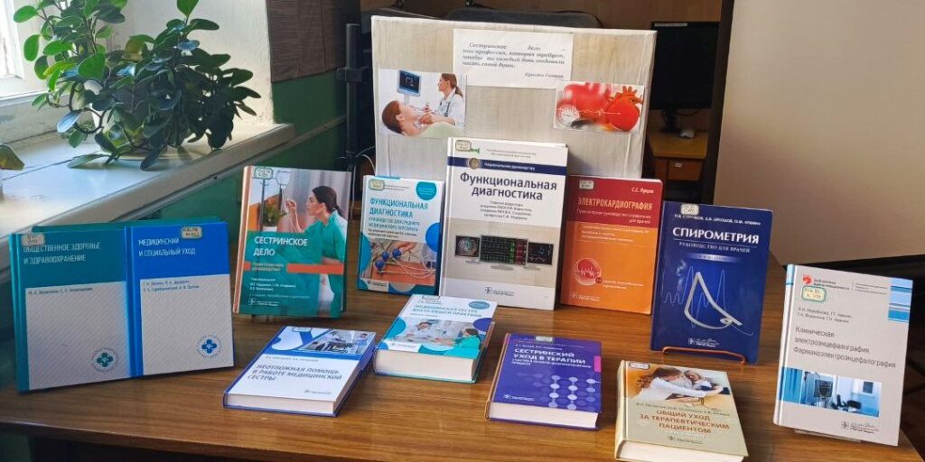 Для слушателей была организована книжная выставка, на ней представлена литература, которая может быть полезна специалистам по профилю слушателей курсов.