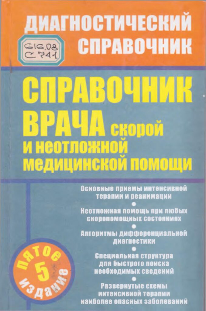 Справочник врача скорой и неотложной медицинской помощи : справочное издание / А. Н. Инькова, Е. Г. Кадиева, А. Л. Исаян, А. А. Стадников. – Изд. 5-е, доп. и перераб. – М. : АСТ, Астрель, 2011. – 574 с. – (Настольная книга).