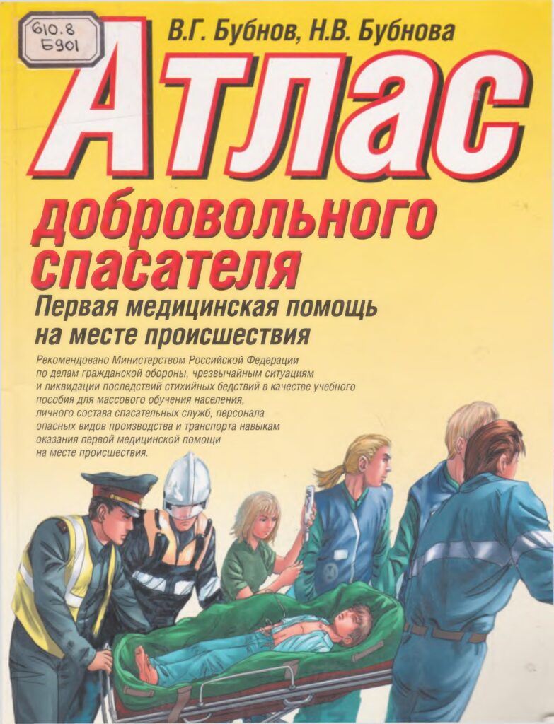 Атлас добровольного спасателя: Первая медицинская помощь на месте происшествия : учебное пособие / В. Г. Бубнов, Н. В. Бубнова ; под ред. зам. министра МЧС России Г. А. Короткина. – М. : АСТ. – [Б. м.] : Астрель, 2004. – 80 с. : ил.