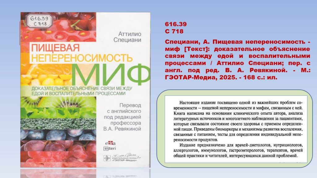 Издание адресовано специалистам в области диетологии, нутрициологии, аллергологии, иммунологии, гастроэнтерологии, терапии и общей практики, а также всем читателям, стремящимся углубить свои знания в данной области.