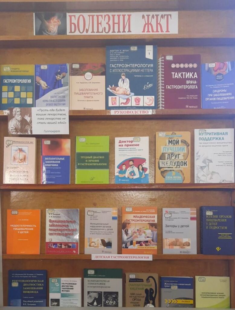 Приглашаем вас посетить библиотеку и ознакомиться с литературой, представленной на тематической экспозиции“Болезни ЖКТ”.
