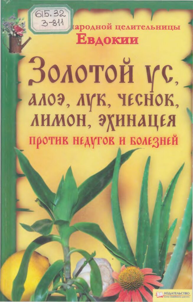 Золотой ус, алоэ, лук, чеснок, лимон, эхинацея против недугов и болезней. [Текст] : монография / Советы народной целительницы Евдокии. – Харьков ; Белгород : Клуб семейного досуга, 2010. – 318 с.