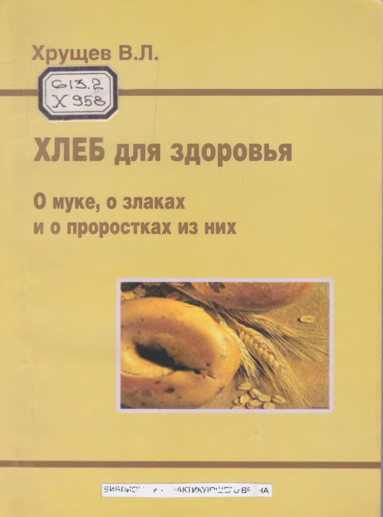 Хлеб для здоровья о муке, о злаках и проростках из них : монография / В. Л. Хрущев. – К. : Медкнига, 2010. – 99 с. – (Библиотечка практикующего врача).