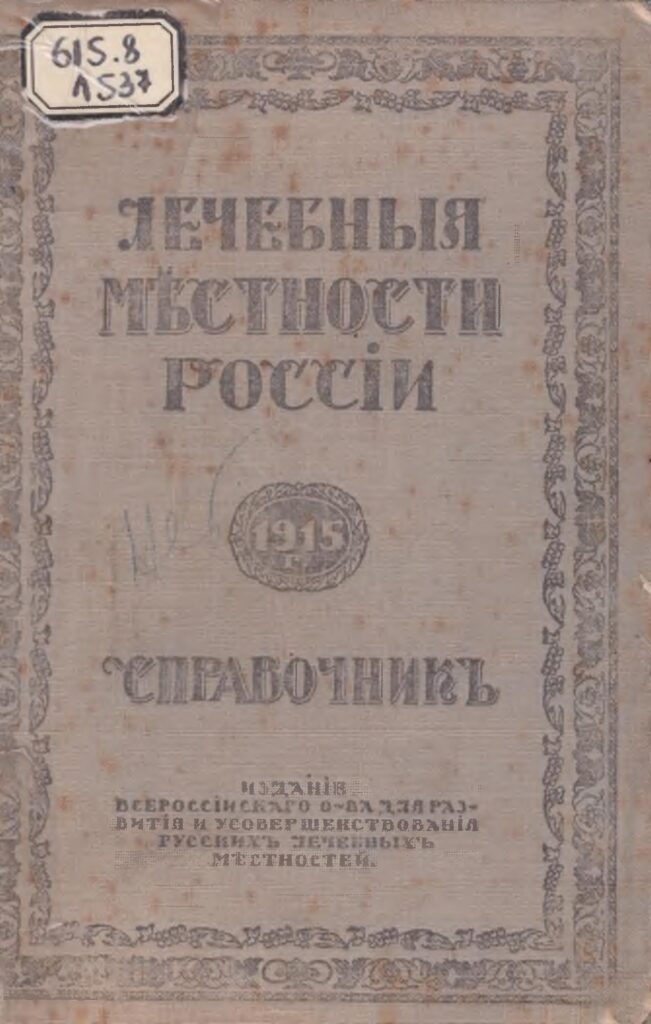 Лечебныя местности Россiи [Текст] : справочникъ. 1915. – Петроградъ : Изд. Всероссiйскаго общества для развитiя и усовершенствования русскихъ лечебныхъ местностей. – [Б. м.] : Якорь, [1915]. – 486 с. : ил.