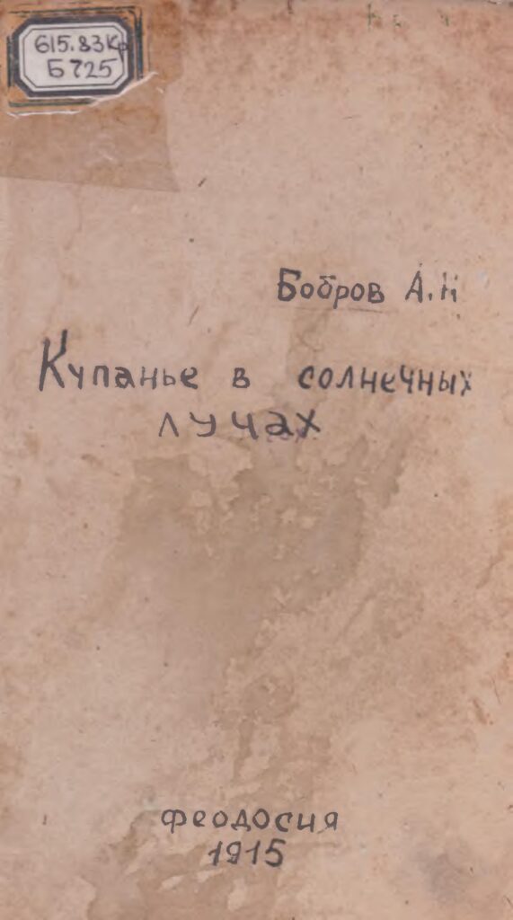 Купанье в солнечныхъ лучахъ [Текст] : (популярно-медицинский очеркъ): Наставленiе для пользованiя солнечными ваннами для больныхъ и здоровыхъ / А.Н. Бобровъ. – Феодосiя : “Типографiя т-ва Прогресс”, 1915. – 68 с.