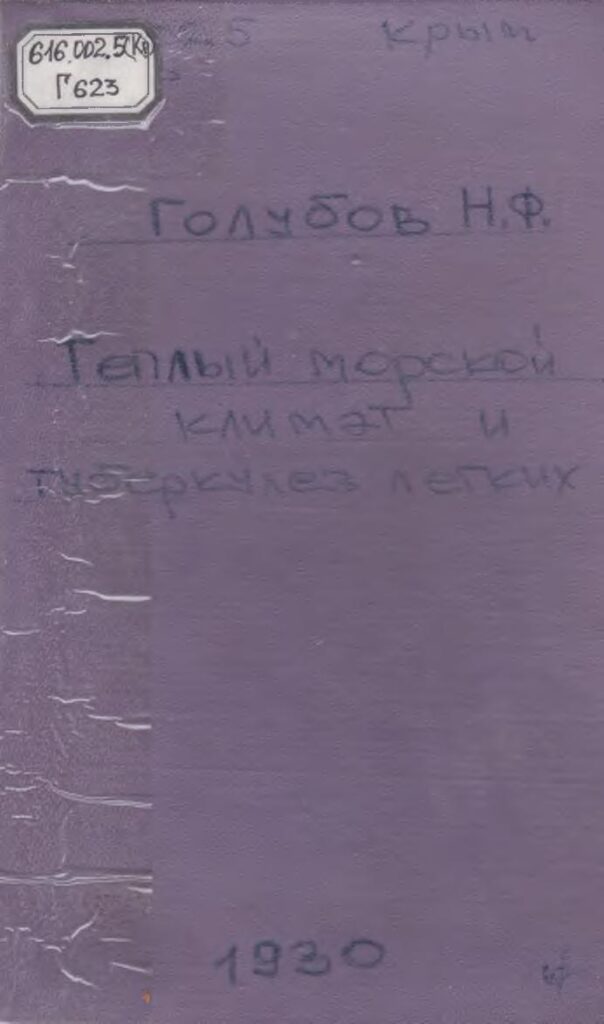 Теплый морской климат и туберкулез легких [Текст] : монография / Н. Ф. Голубов . – Симферополь : Крымское государственное издательство, 1930. – 26 с.