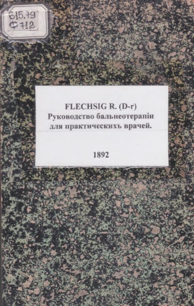 Руководство бальнеотерапiи для практическихъ врачей [Текст] = D-r R. Flechsig`s. Handbuch der Balneotherapie fiir pratische Aerzte, zweite umgearbeitete Auflage : переводъ со 2-го перераб. немецкаго изд. д-ра С.Б. Оречкина и С.З. Серебренникова съ дополнениями о русскихъ минеральныхъ водахъ, грязяхъ, морскихъ купаньяхъ и климатическихъ станцiяхъ / R. Flechsig. – С.-Петербургъ : Изд. журн. “Практическая Медицина” , 1892. – 600 с