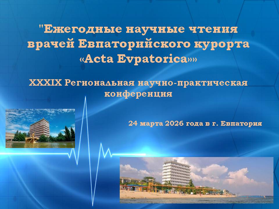 Глубокоуважаемые коллеги! Имеем честь пригласить Вас принять участие в работе XXXIX Региональной научно-практической конференции “Ежегодные научные чтения врачей Евпаторийского курорта «Асtа Evpatorica»”, которая состоится 24 марта 2026 года в г. Евпатория. Информация о месте проведения мероприятия, будет предоставлена дополнительно.