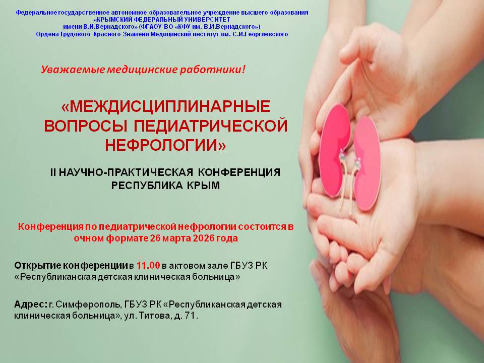 “Междисциплинарные вопросы педиатрической нефрологии”. II Научно-практическая конференция Республика Крым.