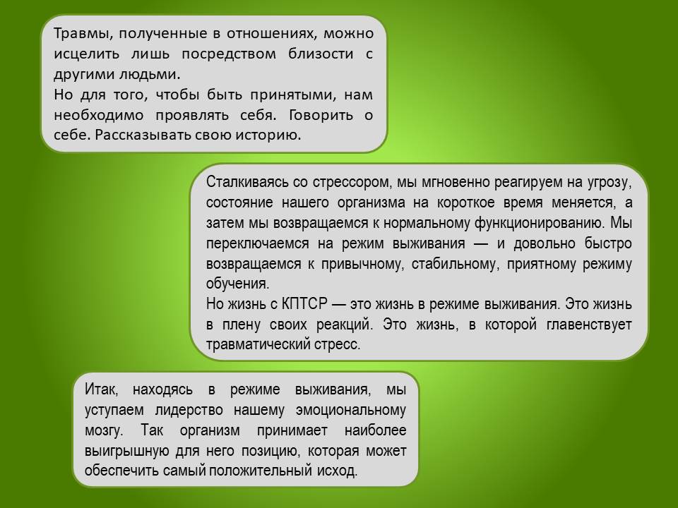 До 61% людей переживают потенциально травмирующие события, способные привести к ПТСР, но этот показатель зависит от множества факторов, включая условия жизни и уровень преступности. Однако не у всех травма вызывает посттравматическое стрессовое расстройство; чаще всего психика справляется, и человек отпускает ситуацию.