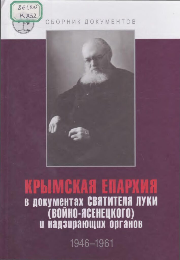 Крымская епархия в документах Святителя Луки (Войно-Ясенецкого) и надзирающих органов. 1946-1961 гг. [Текст] : сборник документов / Сост. протоирей Н. Доненко, Р. А. Замтарадзе, С. Б. Филимонов . – Симферополь : Н. Орiанда, 2015. – 1232 с. : ил.