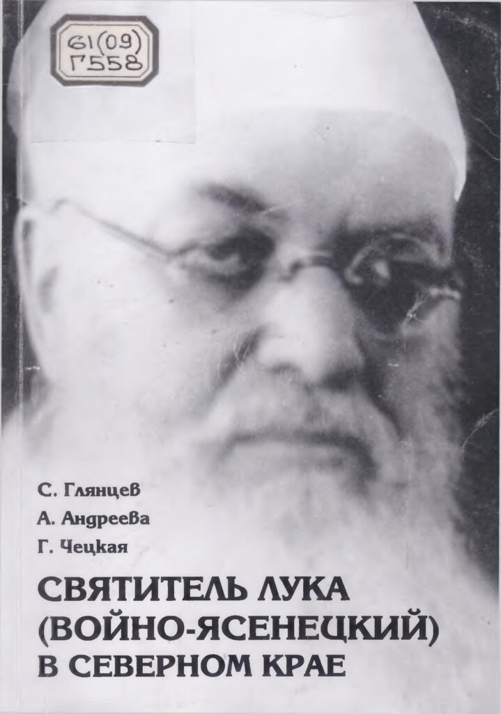 Святитель Лука (Войно-Ясенецкий) в Северном крае : монография / С. П. Глянцев, А. В. Андреева, Г. Б. Чецкая ; Министерство здравоохранения РФ, Ин-т истории медицины РАМН, Северный гос. медицинский ун-т. – Архангельск : Изд-во Северного гос. медицинского ун-та, 2012. – 260 с. : ил.