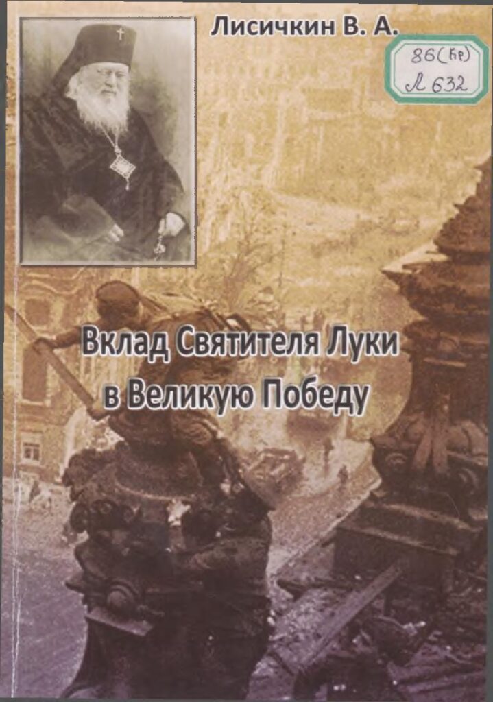 Вклад Святителя Луки в Великую Победу [Текст] / В. А. Лисичкин. – М. : Научно-образовательная теологическая ассоциация. Научно-исследовательский центр изучения наследия и издания трудов архиепископа Луки (Войно-Ясенецкого) Курского государственного университета, 2020. – 125 с. : ил.